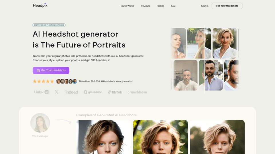 - Generates 40-200+ entirely new headshots with varied backgrounds, poses, lighting, clothing