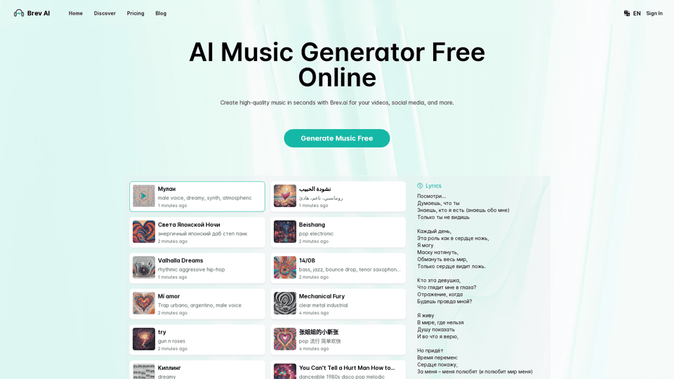 Generates music videos and short films using customizable AI avatars, video templates, and user-provided scripts or lyrics.